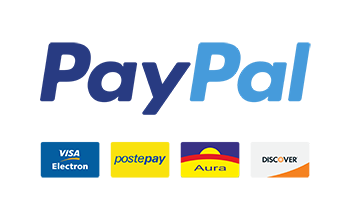 Con il metodo PayPal, potrete pagare con il vostro conto o con carta di credito (Visa Electron, Postepay, Aura, Discover).